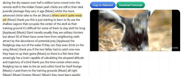 You can easily jump to specific positions of the video, and the text automatically gets highlighted.